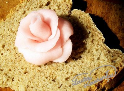 Mai cateva petale, apoi se mai „bibilesc’ petalele rasfrangandu-le mai mult sau mai putin marginile, si floarea e gata. Eu nu am avut ce sa decorez, asa ca am postat trandafirul, nu prea onorant pentru aceasta nobila floare, pe o felie de paine neagra: