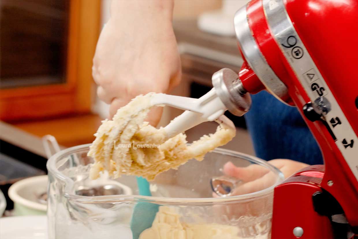 De câteva ori, am oprit mixerul și am răzuit castronul de untul care a aderat de acesta. Am mixat, apoi, în continuare.